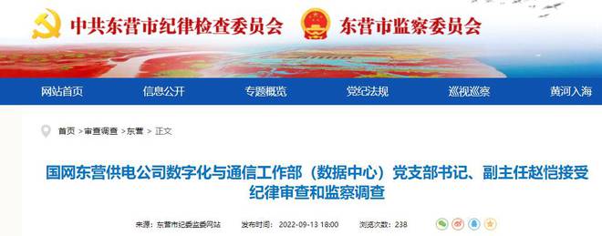據(jù)廣饒縣紀(jì)委監(jiān)委消息:國(guó)網(wǎng)東營(yíng)供電公司數(shù)字化與通信工作部(數(shù)據(jù)中心)黨支部書(shū)記、副主任趙愷涉嫌嚴(yán)重違紀(jì)違法,目前正接受中共國(guó)網(wǎng)東營(yíng)供電公司紀(jì)委紀(jì)律審查和廣饒縣監(jiān)委監(jiān)察調(diào)查。