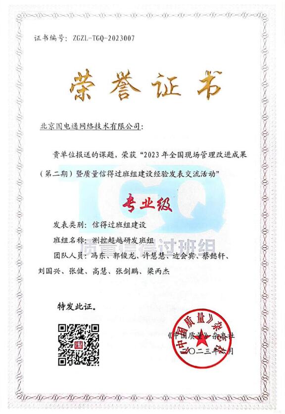 國網(wǎng)信產國電通“測控超越研發(fā)班組”獲得信得過班組建設二等獎
