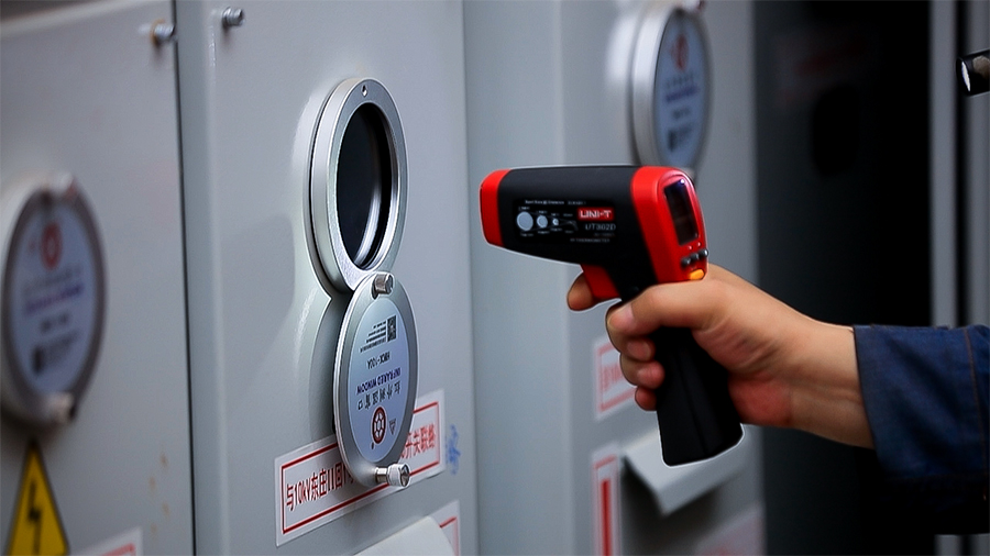 在昆明東風廣場,工作人員正對變壓器內(nèi)的設(shè)備進行檢修(6月7日攝)。新華網(wǎng) 徐華陵 攝