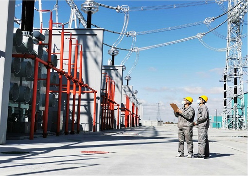 國網(wǎng)冀北電力運維人員在特高壓張家口站巡視設備,全力保障電力可靠供應。