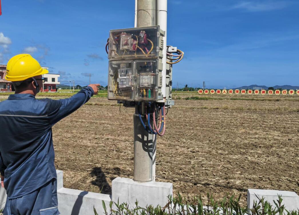 南方電網(wǎng)廣東陽江陽西供電局儒洞供電所客戶經(jīng)理對田間地頭的線路和用電設備進行重點排查。