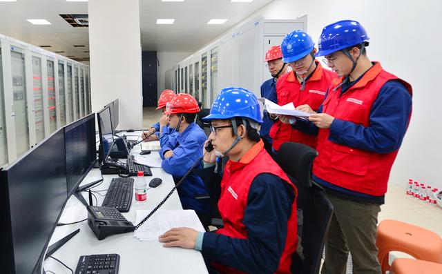 國網(wǎng)天津?yàn)I海供電公司員工在南港乙烯220千伏變電站進(jìn)行送電前的準(zhǔn)備。