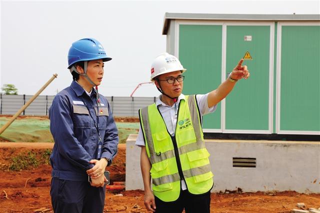 南方電網(wǎng)海南電網(wǎng)公司客戶經(jīng)理到海南醫(yī)學院桂林洋校區(qū)一期項目施工現(xiàn)場走訪。楊永光 攝