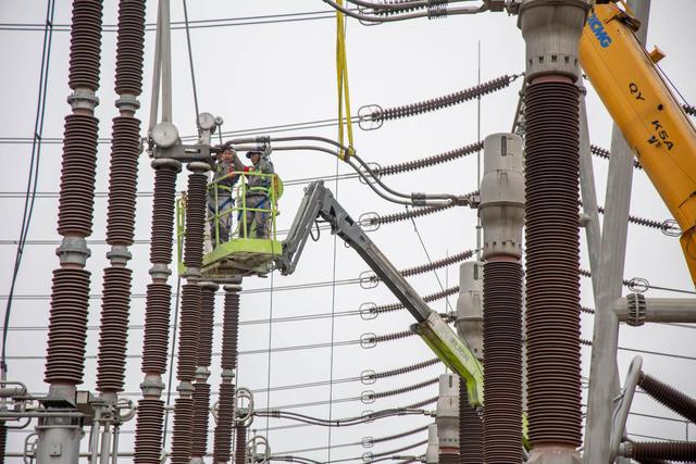 國網(wǎng)淮北供電公司職工對500千伏濉溪變電站的電流互感器開展綜合檢修。王磊攝