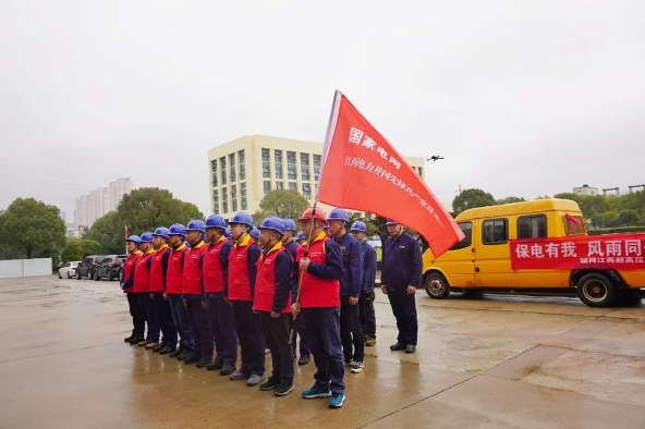 ▲國網(wǎng)宜春供電公司馳援隊伍出征。易洪/攝