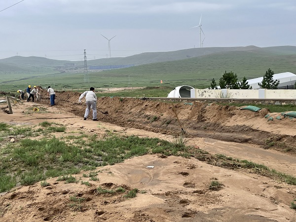中國電力網(wǎng)訊  近期,連續(xù)幾場暴雨給防汛工作帶來很大壓力,大唐蒙中事業(yè)部立即組織各風電場開展防汛專項檢查,組織員工對風電場周圍泄洪通道進行疏浚。