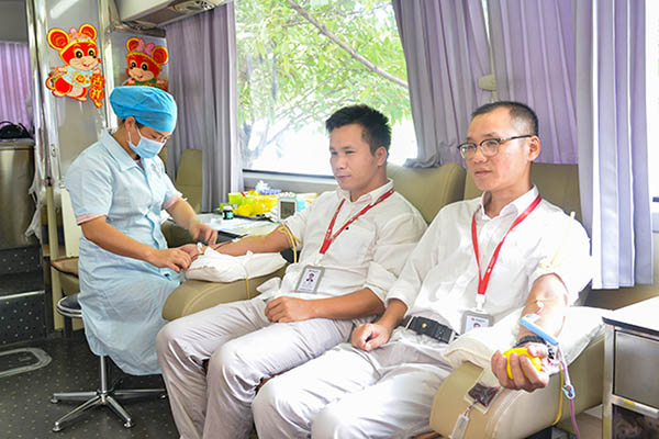 圖為該公司員工踴躍參加無(wú)償獻(xiàn)血