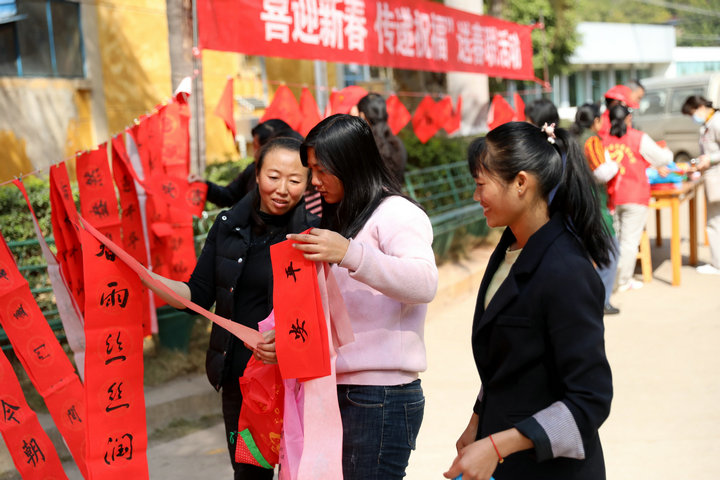 志愿者早早地將1000多幅春聯(lián)和福字掛上,“春風(fēng)拂嶺千山翠,政策歸心萬世昌”、“春色明媚山河披錦繡,華夏騰飛祖國(guó)萬年輕”,一副副紅紅火火的春聯(lián),一張張祈愿平安的“福”字,為即將到來的春節(jié)增添了濃濃的喜慶氛圍。不少職工和外來務(wù)工人員聞?dòng)嵹s來領(lǐng)取春聯(lián),喜悅之情溢于言表。“今年我們響應(yīng)國(guó)家倡議,計(jì)劃就地過年。”老家在四川的吳女士拿著自己挑選的春聯(lián),滿是感謝:“本來打算出去買春聯(lián),增加點(diǎn)迎春氣氛,現(xiàn)在有了,也將福氣帶回家,感謝公司想得周到。”