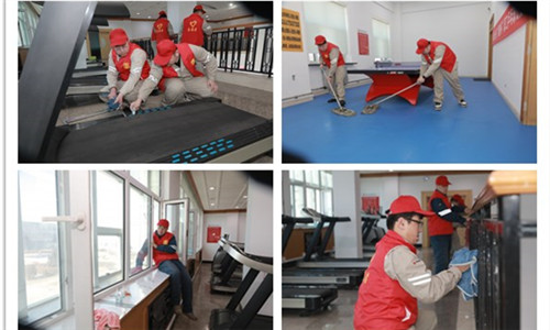 青年志愿者統(tǒng)一身穿紅色志愿者馬甲,發(fā)揚不怕臟不怕累的精神,拿起掃把、拖布、抹布等工具,對活動中心的臺球室、乒乓球室、閱覽室、健身區(qū)域進(jìn)行衛(wèi)生整治,做到環(huán)境衛(wèi)生清理不留死角,讓其變得更加干凈、整潔,部分志愿者還對健身設(shè)備添加潤滑油脂進(jìn)行器材保養(yǎng),增加使用壽命?;顒蝇F(xiàn)場處處充斥著志愿者們忙碌的身影,大家分工協(xié)作,干勁十足,通過共同努力,活動中心環(huán)境煥然一新。
