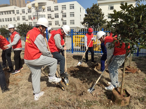 活動中,大家?guī)兹艘唤M分工協(xié)作,干勁十足,揮鋤挖坑、扶苗填土、澆水灌溉,忙的不亦樂乎。經(jīng)過大家的共同努力,一棵棵新栽種的綠植在和煦的春風中昂然挺立,為廠區(qū)環(huán)境帶來一抹生機。