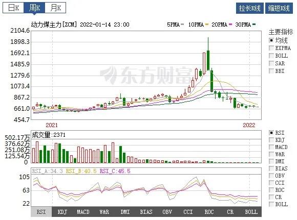 2022年1月14日,動(dòng)力煤主力合約2205開盤于689元/噸,最高價(jià)695.6元/噸,最低價(jià)683.8元/噸,收盤于692.4元/噸,較上一交易日下跌8.6,跌幅1.23%,成交量6928手,持倉量27976手,日減倉356手。