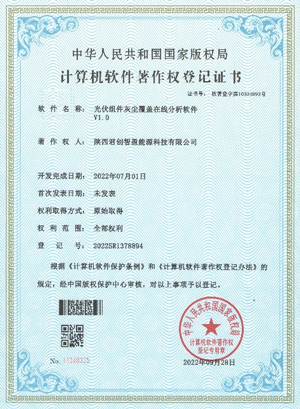 光伏組件灰塵覆蓋損耗在線分析系統(tǒng)及自動清洗裝置順利通過西安工業(yè)大學(xué)“國家精密與超精密加工及測量中式基地”為期六個月的測試,并在多家光伏場站試運后,于今年9月在國家版權(quán)局成功登記,10月正式發(fā)布。