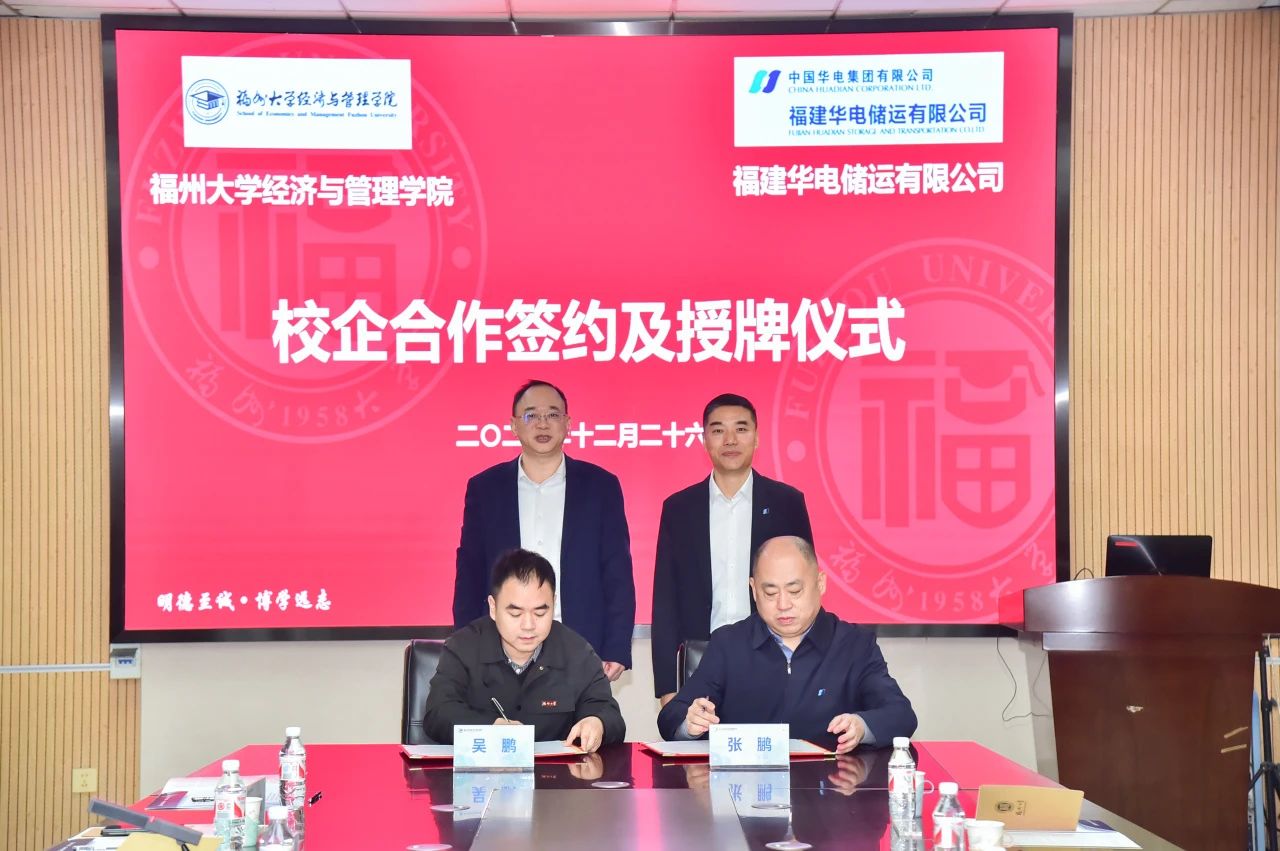 12月26日,華電煤業(yè)黨委副書記、工會(huì)主席劉書德到福州大學(xué)經(jīng)濟(jì)與管理學(xué)院調(diào)研,就進(jìn)一步深化產(chǎn)教融合校企合作進(jìn)行座談交流,并見證福建儲(chǔ)運(yùn)、福州大學(xué)經(jīng)濟(jì)與管理學(xué)院校企合作簽約授牌儀式。福州大學(xué)經(jīng)濟(jì)與管理學(xué)院黨委書記石炳文出席座談。