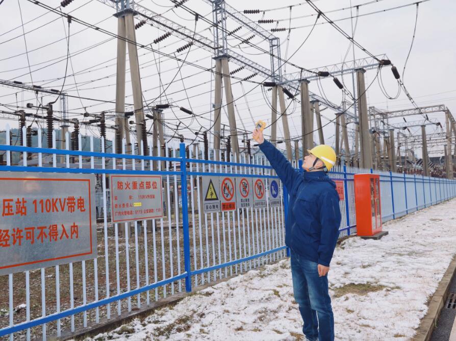 暴雪突至,浙江烏溪江公司運(yùn)行人員在湖南鎮(zhèn)電站220KV開(kāi)關(guān)站加強(qiáng)室外巡檢。