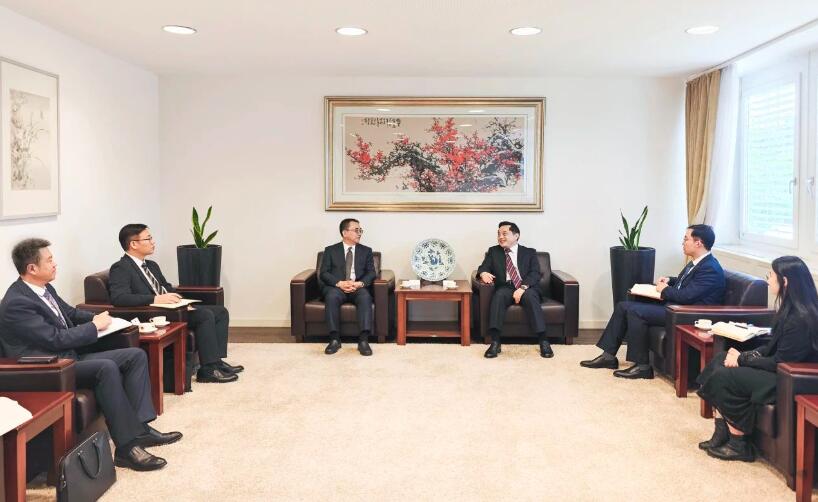 當(dāng)日下午,鄒磊拜訪了我國駐杜塞爾多夫總領(lǐng)館,與總領(lǐng)事杜春國就中國大唐對德開展合作和商務(wù)往來進行了友好交流。