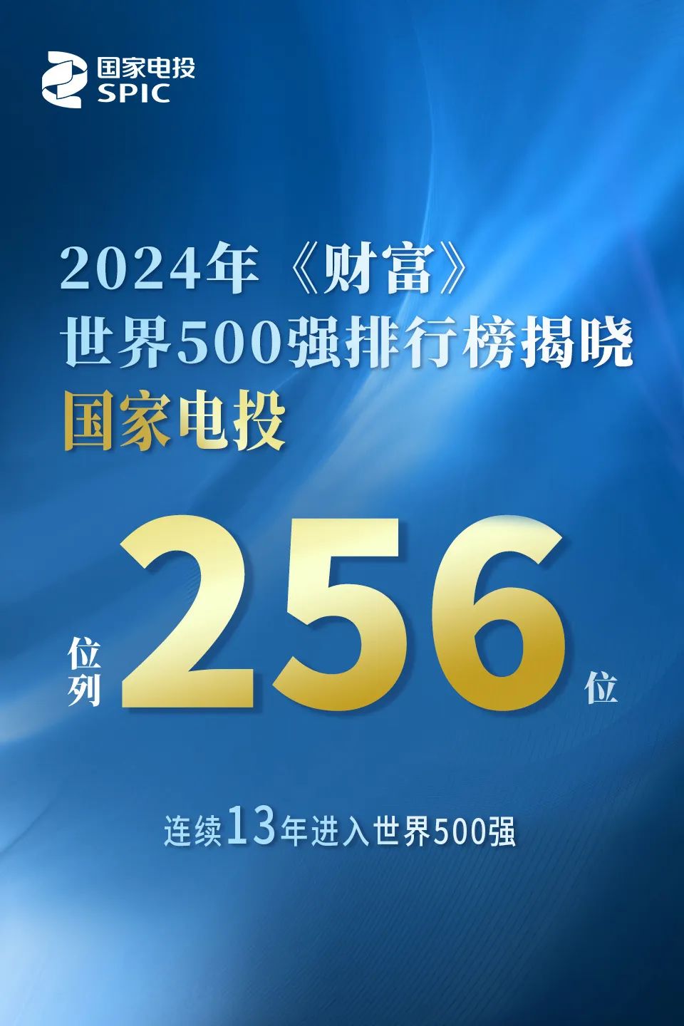 2024年《財(cái)富》世界500強(qiáng)排行榜揭曉,國家電投位列第256位,連續(xù)13年進(jìn)入世界500強(qiáng)。