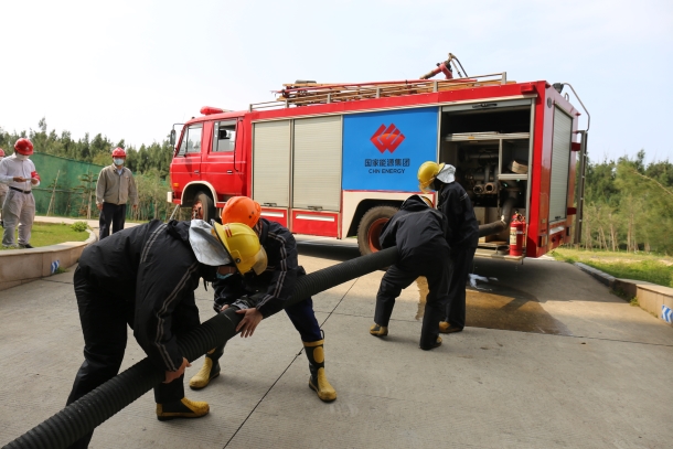 該公司應(yīng)急演練人員正在接水管
