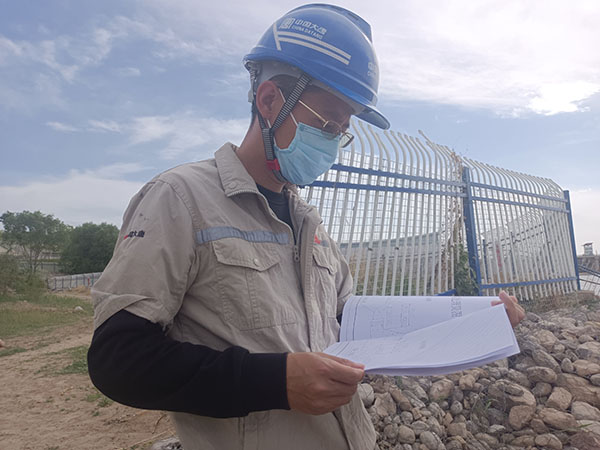 水工人員對(duì)照?qǐng)D紙檢測(cè)壩體情況