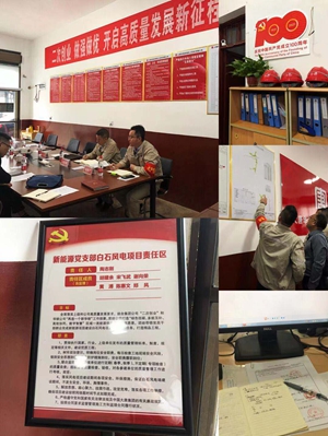 面對項目工期緊張、施工范圍廣、運輸難度大等各種困難,風電項目部團隊始終堅守在他們的“戰(zhàn)場上”,爭分奪秒向投產(chǎn)并網(wǎng)的目標前進。關(guān)鍵時刻,黨員干部沖鋒在前。風電項目部有職工13人,黨員8人,黨員占比65.7%。按照公司黨委統(tǒng)一部署,積極開展黨建進項目工作,成立了白石風電責任區(qū),黨員干部亮身份、亮職責、亮承諾,積極投入到“黨員爭先樹標桿、黨群協(xié)同創(chuàng)一流”項目攻關(guān)和“創(chuàng)崗建區(qū)”活動中來,對工作中的重點、難點問題,黨員干部帶頭攻關(guān),形成月度成效表,取得了項目前期工作八大專題技術(shù)報告并批復(fù);定期組織安全學(xué)習,安排專人負責巡視,及時發(fā)現(xiàn)項目工程安全隱患;解決了風電項目使用林地批復(fù)獲取滯后及項目現(xiàn)場施工等系列問題。