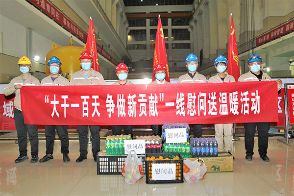 中國電力網(wǎng)訊  為做好“大干一百天、爭作新貢獻”沖刺全年任務(wù)目標各項工作和打好能源保供攻堅戰(zhàn),結(jié)合3號機組A級檢修實際,內(nèi)蒙古大唐海勃灣水利樞紐開發(fā)有限公司工會細致深入做好做實一線慰問和送溫暖工作,夜間趕赴生產(chǎn)現(xiàn)場對生產(chǎn)一線職工進行慰問,將水果、飲料等物品送至職工手中,進一步加強對職工的關(guān)心關(guān)愛。