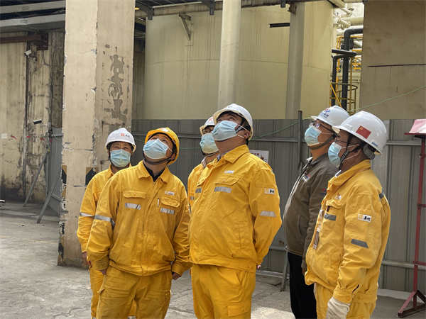 在鍋爐、汽輪機等檢修現(xiàn)場,薛總與各項目負責人、檢修人員進行深入交流,了解檢修項目的施工進度、節(jié)點完成情況、現(xiàn)場安全措施執(zhí)行情況等,詳細了解現(xiàn)場施工重點、難點問題。他要求各項目負責人要充分發(fā)揮黨支部、黨員先鋒隊、黨員示范區(qū)的引領作用,在保證安全的前提下,克服疫情帶來的不利影響,嚴格按照公司的節(jié)點計劃,保質(zhì)保量完成本次檢修工作;要求做好設備解體發(fā)現(xiàn)問題的分析和研究,制定出有針對性的措施,保證設備長治久安;對設備管理專業(yè)人員發(fā)揮工匠精神和主人翁精神,自己制造專用工具、自己發(fā)揮技術經(jīng)驗、減少外委修理、降低檢修費用的做法給予肯定,要求做好這種精神的傳承和技術的傳幫帶。