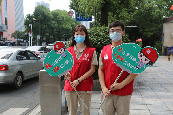 “不亂穿馬路,不翻越交通護(hù)欄。”“文明開車,不得車窗拋物。”“紅燈停、綠燈行,黃燈亮了等一等!”“禮讓斑馬線,文明過馬路。”志愿者們對過往行人不文明行為及時進(jìn)行勸導(dǎo),為株洲文明城市建設(shè)貢獻(xiàn)力量。