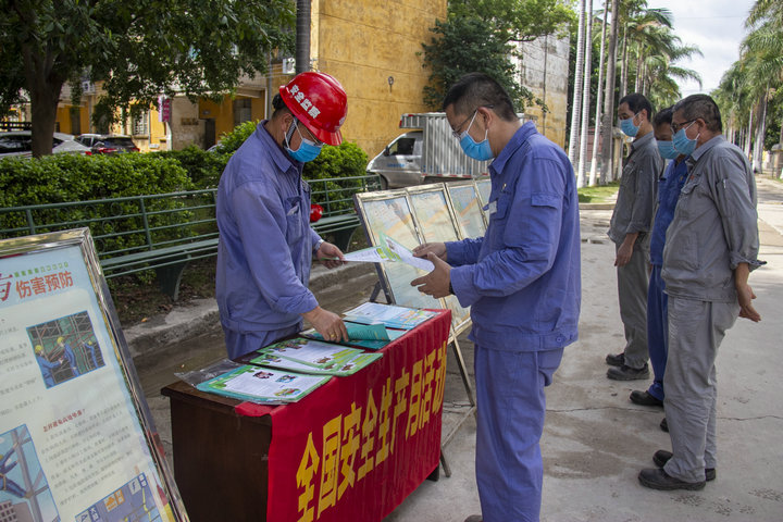 宣傳人員在廠部福利區(qū)擺放“全民應急避險與自救”、“危險源辨識與傷害預防”主題宣傳展板,走進辦公場所為過往員工和群眾詳細講解安全生產法律法規(guī),普及應急避險自救、疫情防控科普知識,對“安全生產月”重要意義進行全方位、多角度、立體化的集中宣傳?;顒又泄舶l(fā)放宣傳資料400余份。