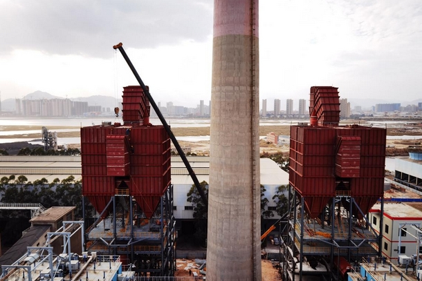 中國電力網(wǎng)訊 11月16日,福建晉江熱電公司鍋爐脫硫除塵改造項目完成封頂關(guān)鍵節(jié)點,脫硫塔與布袋除塵器形成貫通。