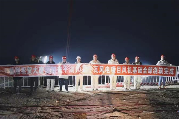 自項目開工以來,省公司及該廠領導多次到場指導工作,視察現(xiàn)場的同時積極協(xié)調(diào)解決項目資金、征地等難題,省公司工程建設部委派專業(yè)主管全程進行技術指導支持。為實現(xiàn)整體工期目標,工程管理部始終將工作重點聚焦在抓安全、保質(zhì)量、趕進度、控造價上,多次召開會議優(yōu)化施工方案,積極處理阻工問題,克服連續(xù)降雨天氣,挑戰(zhàn)高溫酷暑,協(xié)商解決材料供貨與圖紙設計問題,并應對不利因素。除此之外對每一步工序進行嚴格質(zhì)量把關驗收,確保風機地基驗槽、鋼筋加工安裝、上下錨板水平度控制、大體積混凝土澆筑養(yǎng)護等各環(huán)節(jié)工藝符合設計及施工規(guī)范要求,重點加強對風機基礎混凝土保溫保濕養(yǎng)護、加強混凝土溫度監(jiān)測及二次灌漿工序銜接,及時掌握混凝土內(nèi)外溫差,為混凝土養(yǎng)護工作提供依據(jù),確保混凝土施工質(zhì)量。