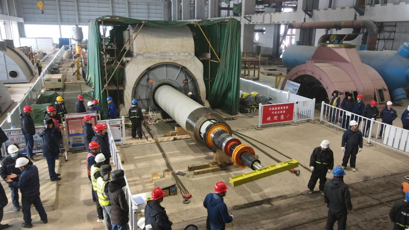 華能正寧百萬項目1號機組發(fā)電機轉子穿裝成功
