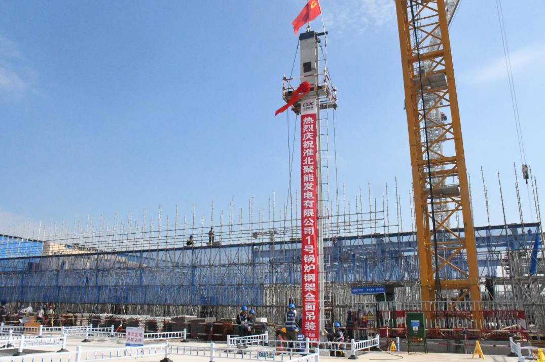 8月1日,中國能建建筑集團承建的淮北國安電廠二期2×660兆瓦超超臨界機組項目1號鍋爐鋼架全面吊裝,標志著機組進入安裝階段。