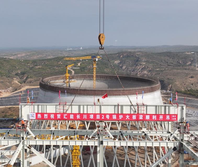 10月5日,中國能建浙江火電承建的內(nèi)蒙古匯能長川項(xiàng)目2號機(jī)組鍋爐大板梁吊裝就位。