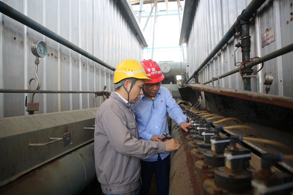 除塵布袋是袋式除塵器的心臟,布袋噴吹氣包可以吹除布袋上的灰塵,確保除塵系統(tǒng)的有效運(yùn)行。值班過(guò)程中,環(huán)保部運(yùn)行三班發(fā)現(xiàn)2號(hào)爐氣包噴吹電磁閥卡澀漏氣,脫硝專工吳文武和該班班長(zhǎng)龍智軍立即趕赴現(xiàn)場(chǎng),他們通過(guò)“望、聞、切”等方式,觀察現(xiàn)場(chǎng)設(shè)備運(yùn)行情況、聽取閥門漏氣情況、用鐵錘敲擊管道等,仔細(xì)檢查現(xiàn)場(chǎng)噴吹氣包運(yùn)行情況,確保布袋壓差正常和除塵系統(tǒng)正常運(yùn)行。