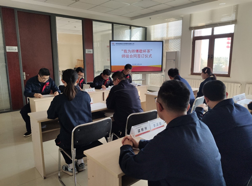 儀式上,6對師徒簽訂“師帶徒”協(xié)議書,徒弟向師傅敬“拜師茶”,師傅向徒弟回贈鋼筆,鼓勵新入職員工要秉承“甘于奉獻 追求卓越”的企業(yè)精神,堅定信念,積極學習,快速適應崗位職責。