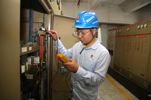“作為一名一線工作者,在這個舉國歡慶的節(jié)日里,能堅守崗位,用獨屬于電力人的方式慶祝這個節(jié)日,也是一件很有意義的事情。”該公司電控班班長姜偉正在配電室對開關(guān)進行保護換型及二次回路檢查。