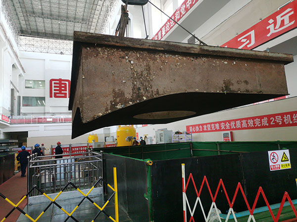 大唐海勃灣水利樞紐公司2號機組流道蓋板成功吊出