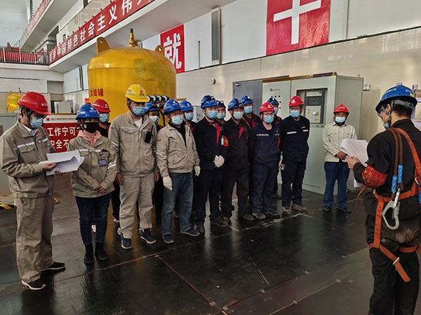 拆除工作開始前,專業(yè)人員、檢修人員、監(jiān)理人員三方按照編制的專項(xiàng)吊裝方案認(rèn)真核對(duì)檢修措施,重點(diǎn)對(duì)主橋機(jī)供電系統(tǒng)、起升系統(tǒng)、吊具進(jìn)行檢查。同時(shí)組織工作負(fù)責(zé)人和工作班成員現(xiàn)場(chǎng)開展三講一落實(shí)活動(dòng),著重對(duì)本次吊裝作業(yè)過程中存在的風(fēng)險(xiǎn)點(diǎn)和預(yù)控措施進(jìn)行現(xiàn)場(chǎng)講解。燈泡頭拆除過程中,由于尺寸原因泡頭與定子基座把合螺栓松開后,未能按照預(yù)期直接放置到專用工具上。檢修指揮部現(xiàn)場(chǎng)研究方案,轉(zhuǎn)變思路,采用單側(cè)著力再逐步調(diào)整另一側(cè)的方案,把干涉區(qū)域盡量避開,整個(gè)拆除吊裝歷時(shí)5個(gè)小時(shí)順利完成。拆除吊運(yùn)期間,該公司各級(jí)人員到位監(jiān)督,有效保障了安全措施齊全可靠?,F(xiàn)場(chǎng)檢修人員充分發(fā)揚(yáng)團(tuán)結(jié)協(xié)作、不怕吃苦、奮勇拼搏的工作精神,本著精益求精的工作態(tài)度,嚴(yán)格執(zhí)行安全規(guī)程、檢修工藝和工序,確保了整個(gè)拆除工作萬無一失。