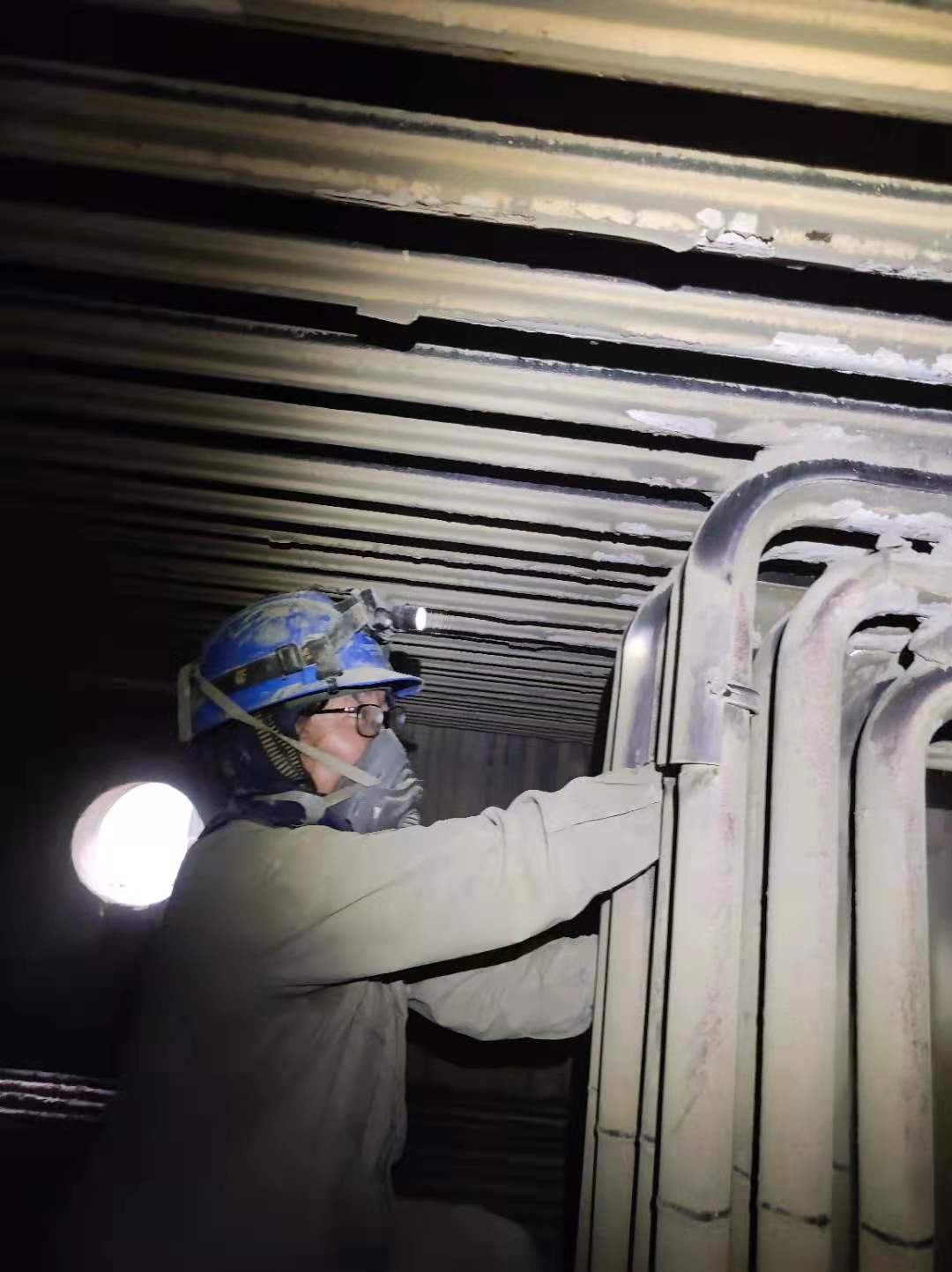 該公司鍋爐檢修班技術骨干與金屬監(jiān)督人員走爐膛內認真,伃細檢查,眼看、手摸、測厚儀測量,對發(fā)現(xiàn)的“四管”缺陷進行認真記錄在冊,對查出有問題的管束:鼓包、防磨瓦脫落、翹曲、管壁磨損等情況,采取相應的技術手段、方法進行修復處理,做實、做細鍋爐“四管”防磨、防爆檢查及修復“四管”缺陷的工作,提高機組運行可靠性,為安全生產(chǎn)工作夯實基礎。