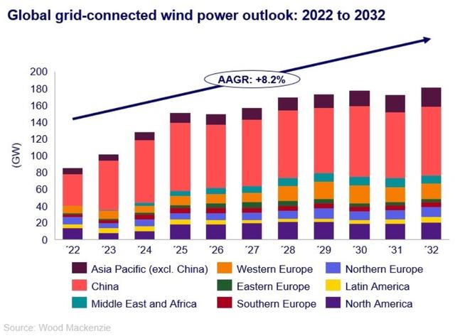 咨詢公司伍德麥肯茲(Wood Mackenzie)在本周二表示,由于美國海上風(fēng)電行業(yè)的財務(wù)困難,以及中國對于風(fēng)電項目的審批和裝機(jī)進(jìn)展緩慢,未來十年,全球風(fēng)電行業(yè)新增裝機(jī)容量將低于此前的預(yù)期。
