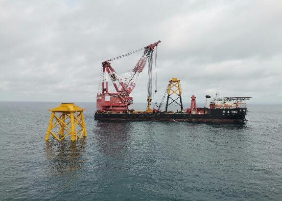 5月5日,中國能建廣東火電順利完成粵電陽江沙扒海上風電項目首臺四樁導管架風機基礎安裝。該導管架高度超50米,總重超930噸,是目前已知國內(nèi)最大最重的四樁導管架風機基礎之一。