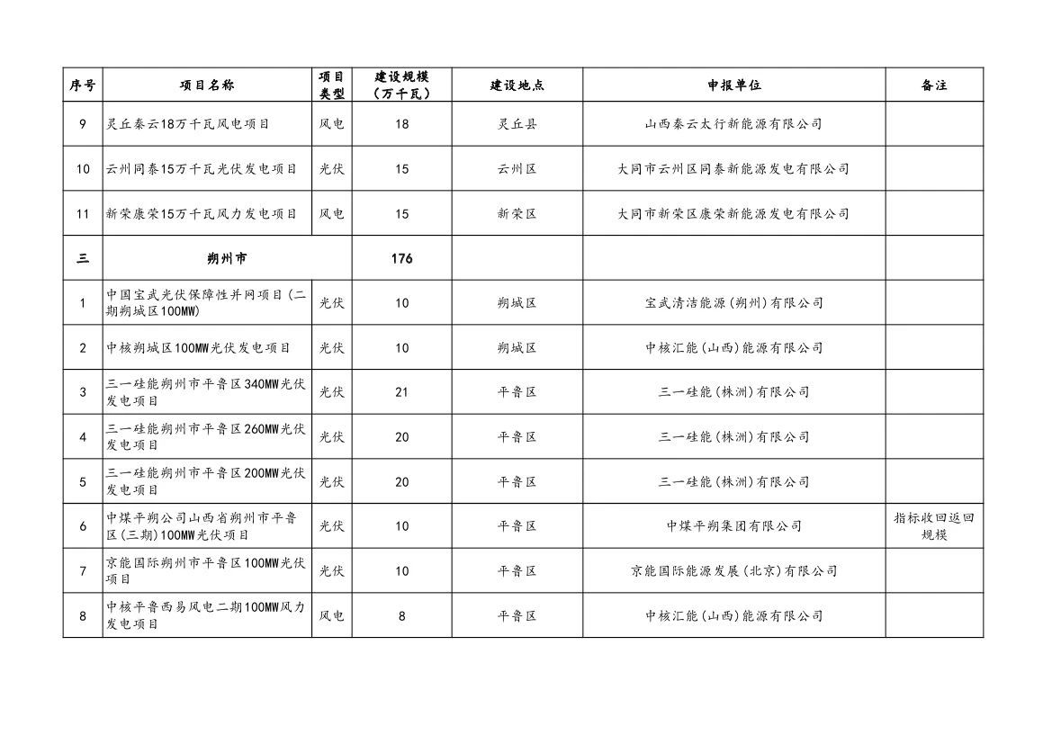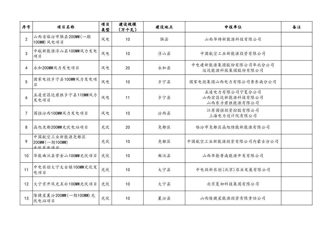 附件:山西省2023年風(fēng)電、光伏發(fā)電保障性并網(wǎng)項目清單