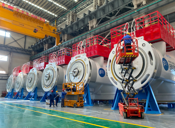 明陽智能海上風電產(chǎn)業(yè)園內(nèi)設(shè)備高效運轉(zhuǎn)、操作者各司其職 陳坂升 攝