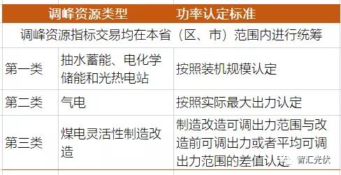 根據(jù)“1138號文”,被認可的調(diào)峰資源可以分為三類,每類的調(diào)峰能力(功率)的認定方式如下表所示。