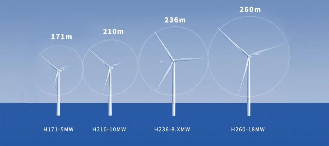 作為我國大型海上風(fēng)電裝備研發(fā)制造領(lǐng)域的破局者、世界紀錄的創(chuàng)造者、海上風(fēng)電事業(yè)的引領(lǐng)者,自2008年起深耕海上風(fēng)電,中國海裝開創(chuàng)并引領(lǐng)了國內(nèi)風(fēng)電行業(yè)大功率、長葉片風(fēng)電機組的大型化發(fā)展方向,牢牢掌握了機組大型化的核心控制技術(shù),開創(chuàng)了國內(nèi)大兆瓦海上風(fēng)電機組平價批量應(yīng)用的先河。秉承著“研制一代、預(yù)研一代、探索一代”的理念,中國海裝始終按照階梯前進的方式,持續(xù)穩(wěn)步在提升風(fēng)輪直徑和額定功率尋求新的突破。