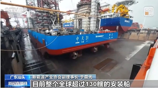 新能源產(chǎn)業(yè)協(xié)會(huì)副理事長 于晨光:海上風(fēng)電安裝船作為整個(gè)海上風(fēng)電安裝效率提升就是最重要的一個(gè)船機(jī)。目前整個(gè)全球超過130艘的安裝船,中國造超過100艘,也就占了這80%以上的這個(gè)份額。目前高性能的安裝船需求訂單已經(jīng)排到2028年,所以其實(shí)中國的這個(gè)安裝船的市場可以走向歐美。