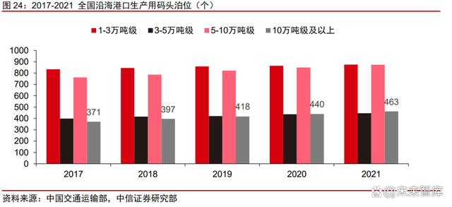 碼頭資源稀缺,港口岸線審批難度大。碼頭建設(shè)需通過(guò)省政府審批滿足規(guī)劃,港口岸 線使用權(quán)需要通過(guò)國(guó)家交通運(yùn)輸部批復(fù),碼頭岸線的資源審批難度持續(xù)加大,同時(shí)港口建 設(shè)需要自然條件良好的岸線資源,對(duì)周邊配套資源也有較高的要求。據(jù)中國(guó)交通運(yùn)輸部披 露的數(shù)據(jù),截至 2021 年底,我國(guó)萬(wàn)噸級(jí)及以上泊位數(shù)量共計(jì) 2659 個(gè),風(fēng)電塔筒管樁運(yùn)輸 所需的 10 萬(wàn)噸級(jí)及以上泊位數(shù)量共計(jì) 463 個(gè),占萬(wàn)噸級(jí)及以上泊位數(shù)量的 17%,年新增 數(shù)僅 23 個(gè)。因此已獲審批的港口碼頭等生產(chǎn)基地逐步成為稀缺資源,掌握相關(guān)資源的廠 商先發(fā)優(yōu)勢(shì)顯著。