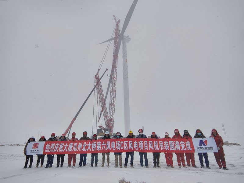 大唐瓜州北大橋第六風(fēng)電場(chǎng)C區(qū)風(fēng)電項(xiàng)目風(fēng)機(jī)吊裝圓滿完成