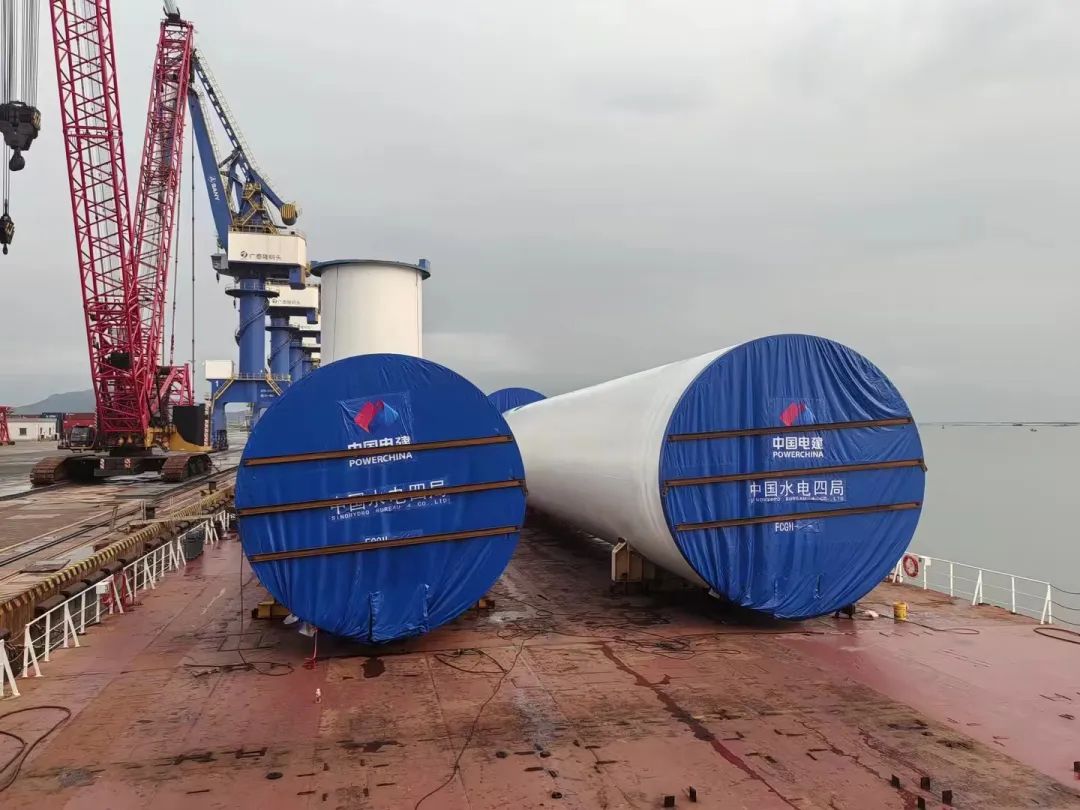 該項(xiàng)目裝機(jī)容量高達(dá)289MW,計(jì)劃安裝34臺(tái)8.5MW風(fēng)機(jī)。陽江公司承擔(dān)其中14臺(tái)塔筒的加工制造任務(wù),工期緊任務(wù)重。這些塔筒不僅體積龐大,僅單套重量(不含電氣柜)達(dá)到了約510噸,且結(jié)構(gòu)復(fù)雜,共4段,總長(zhǎng)度111米,最大直徑7.5米,最小直徑5.3米。