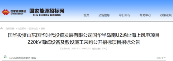 招標(biāo)范圍為國家能源集團(tuán)國華半島南U2海上風(fēng)電項目2回(兩期各1回)220kV海纜設(shè)備采購及敷設(shè)施工,包括但不限于:(具體詳見第五章技術(shù)文件)
