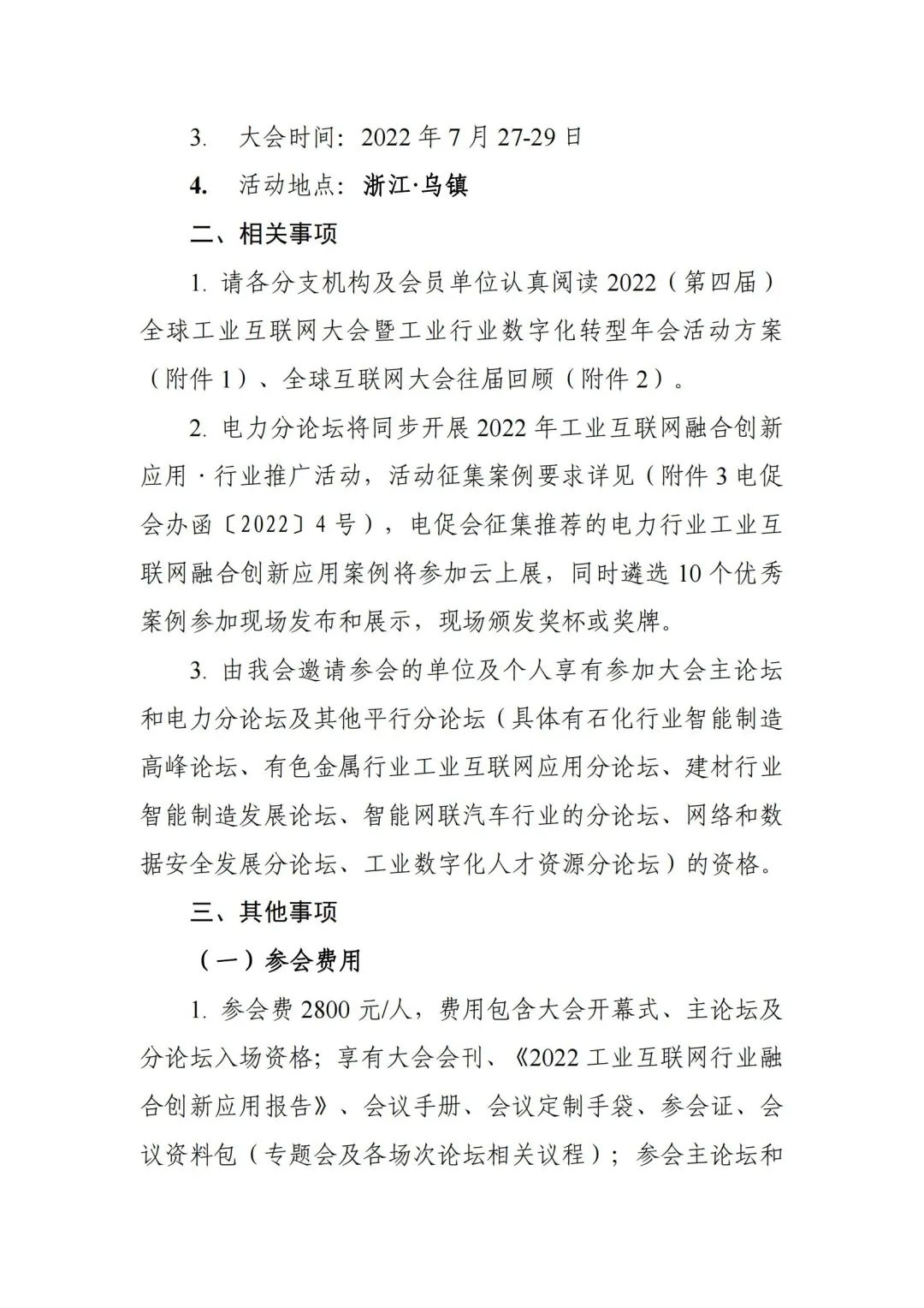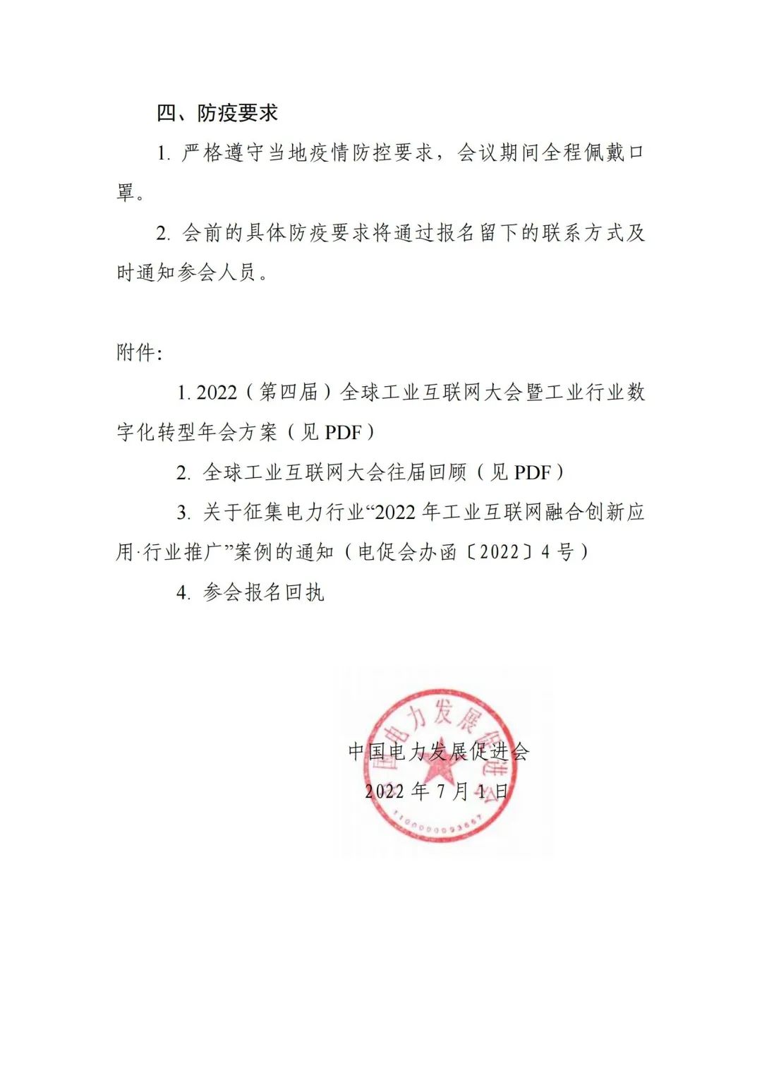 關(guān)于邀請(qǐng)參加 2022(第四屆)全球工業(yè) 互聯(lián)網(wǎng)大會(huì)暨工業(yè)行業(yè)數(shù)字化轉(zhuǎn)型年會(huì)、電力行業(yè)工業(yè)互聯(lián)網(wǎng)應(yīng)用分論壇的通知